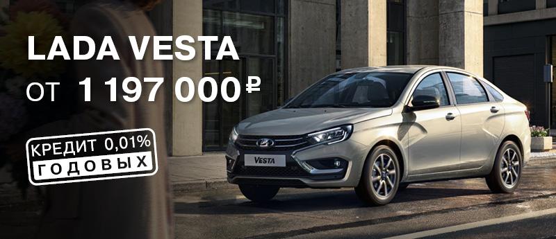 * ПСК: 3,010%–33,692% годовых. Ставка по кредиту 0,01% действует при приобретении нового автомобиля LADA Vesta (ТС) с автоматической коробкой переключения передач по программе VESTA ВЫГОДНЫЙ. Валюта кредита — рубли РФ; первоначальный взнос — от 50%; срок кредита — 12 мес.; сумма кредита — от 200 000 руб. Предложение действует при условии единовременного оформления на ТС договора имущественного страхования КАСКО в любых страховых компаниях, выбранных заемщиком и соответствующих требованиям Банка. При расторжении договора имущественного страхования КАСКО процентная ставка увеличивается на 3% годовых. Возврат кредита — ежемесячные (аннуитетные) платежи. Обеспечение — залог приобретаемого ТС. Действительно до 31.03.2026. Предложение ограничено. Не оферта.